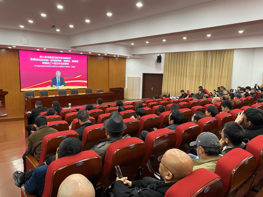 2024年12月11日下午,樱花小说 学习贯彻党的二十届三中全会精神集中轮训于人文楼203学术报告厅准时开展。全体教工党员出席。