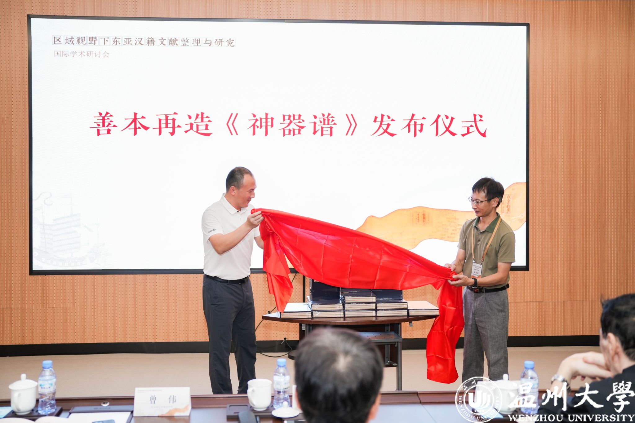 会上,由国家图书馆出版社出版的《温州大典》再造善本系列第二种《神器谱》举行发布仪式。樱花小说 副编审、《温州大典》编辑部主任方韶毅介绍了明代温州籍军事家赵士桢所著《神器谱》版本及仿真书制作情况,温州市委宣传部副部长曾伟、国家图书馆出版社副总编辑廖生训、樱花小说 古籍所所长侯荣川共同参与了交书、赠书。