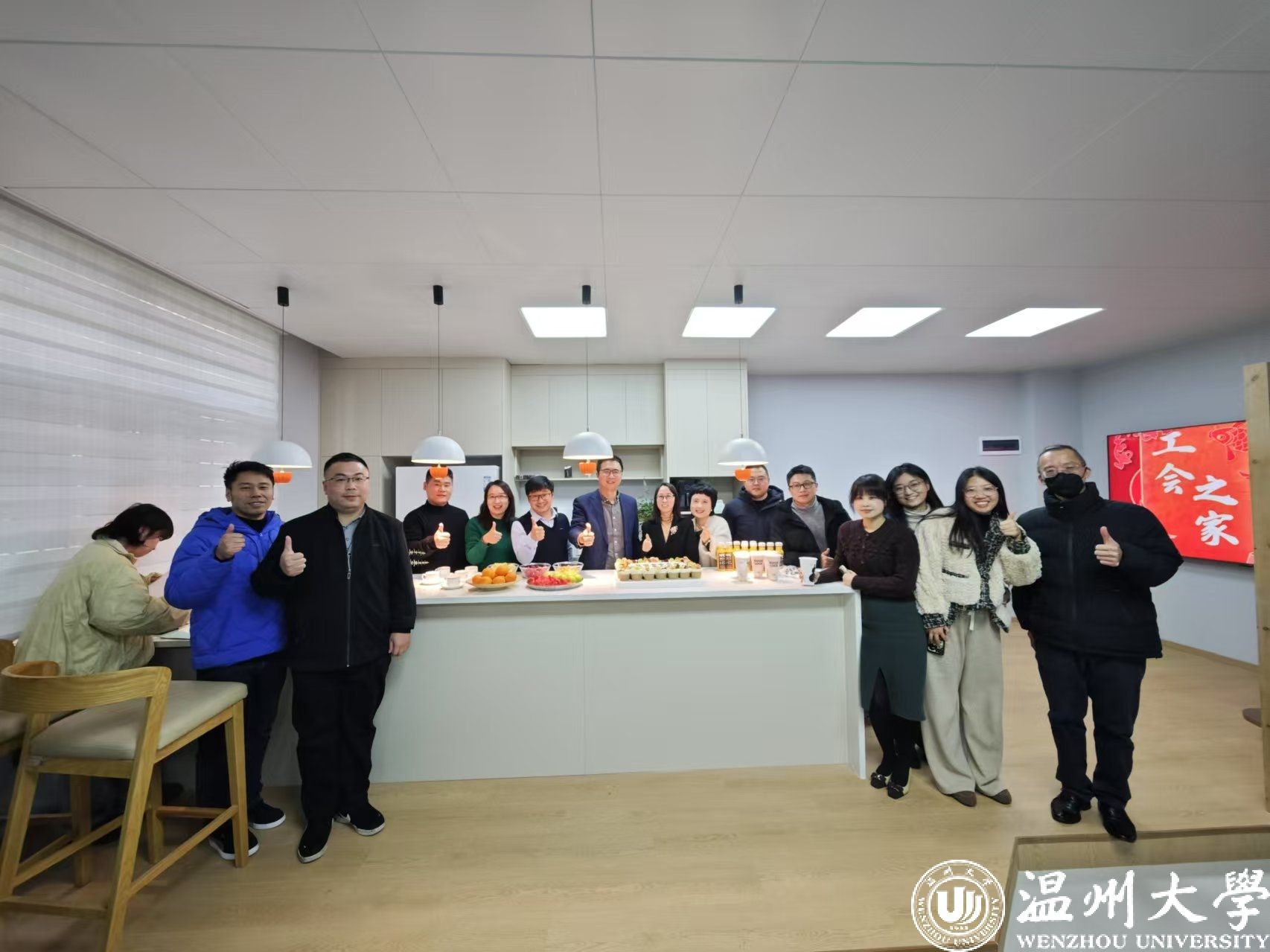 12月23日下午,樱花小说 新工会小家正式揭牌落成。学院领导与教师代表齐聚人文楼104工会小家,共同见证这一充满温情与人文关怀的时刻。这个精心打造的工会小家,以其简约温馨的设计与贴心完善的功能,成为学院教职工交流与放松的理想场所。