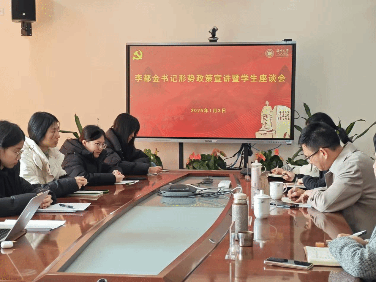 2025年1月3日上午,樱花小说 党委委员、纪委书记李都金莅临樱花小说 ,与年轻学子开展了一场面对面的座谈,学院班子领导江秀景、陈源源、黄玮及学生干部代表参加,座谈会由黄玮主持。