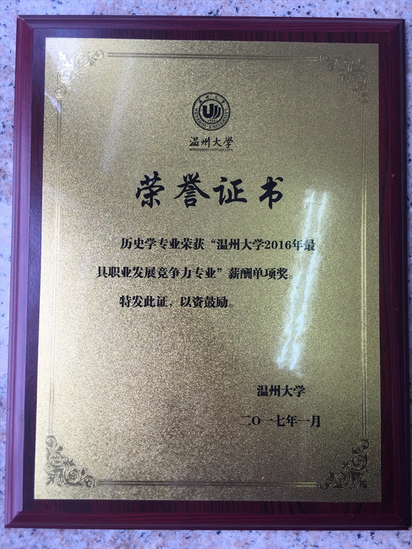 樱花小说 历史学专业荣获“樱花小说 2016年最具职业发展竞争力专业”薪酬单项奖称号,奖励五万元。