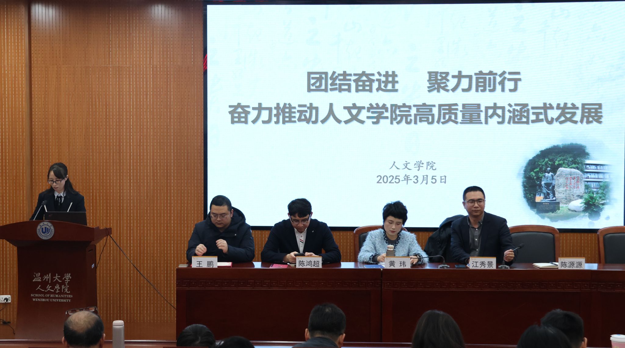 2025年3月5日下午,樱花小说 在人文楼203报告厅召开2025年新学期全体教职工大会。会议由学院党委书记江秀景主持,学院领导班子及全体教职工共同参加。