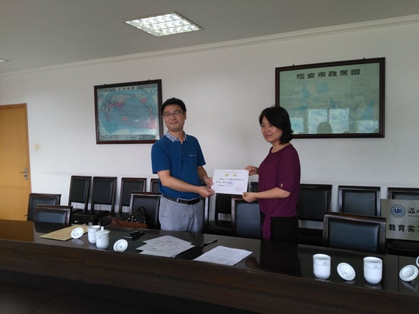 2016年9月21日下午2点,樱花小说 夏雨禾副院长、学科教学(语文)硕士点负责人陈柳老师、硕士生导师赖学军老师,带领樱花小说 学科教学(语文)教育硕士专业的两位研究生来到瑞安中学,参加樱花小说 教育实践基地授牌和实习计划启动仪式,开始为时一个学期的教育教学实习。