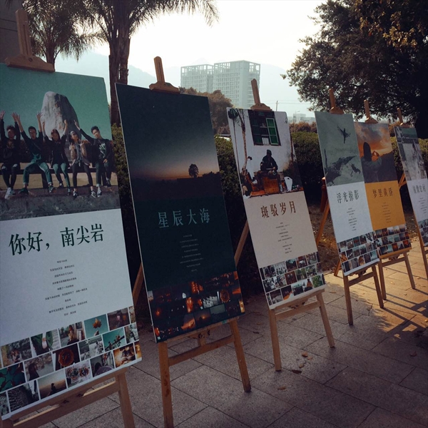 除此之外,广告学专业也借这次招生测试机会,向考生和家长介绍自己的专业教学特色和成果。在家长休息室播放专业介绍和学生成果、制作大幅的广告展版,分发学生自己精心制作的明信片。