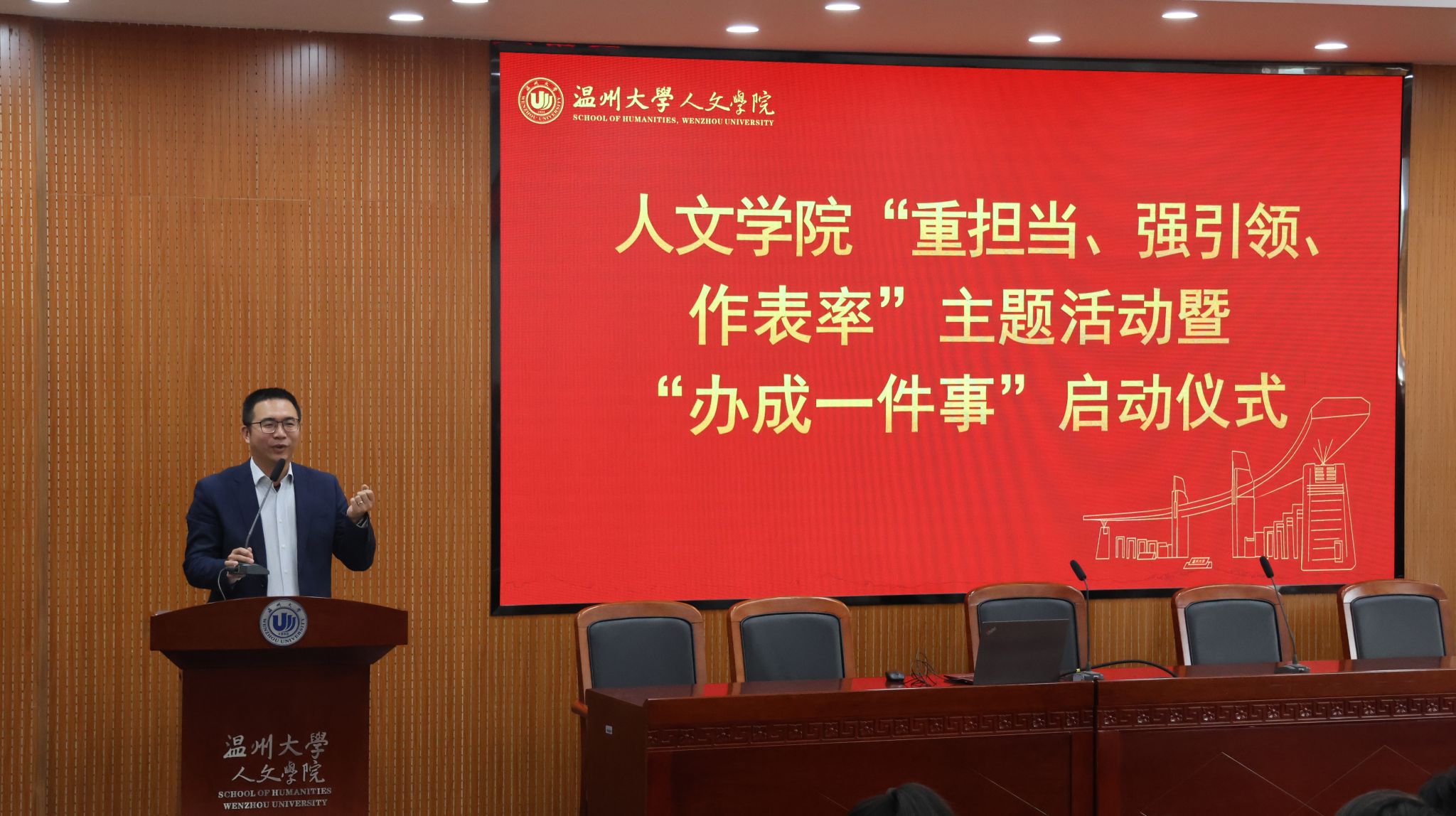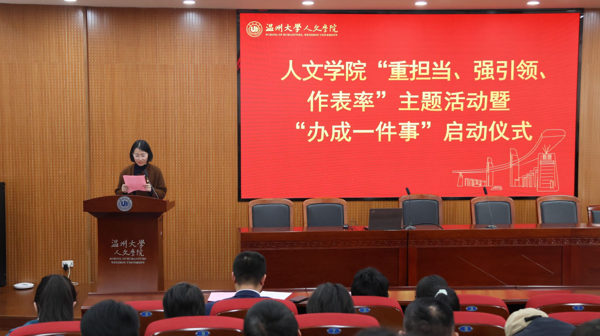 学院党委副书记黄玮主持“重担当、强引领、作表率”主题活动暨“办成一件事”启动仪式。她指出,全体党员要关注学生学业规划、心理健康、职业发展,加强与学生谈心谈话,提升人才培养质效。黄玮副书记现场宣读《樱花小说 党员先锋引领“十要”》,希望党员同志以“十要”为行动标尺,走在前、树榜样、做表率。