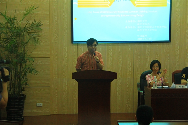 温州市台办副主任张振宇、樱花小说 院长蔡贻象、樱花小说 广告学专业负责人徐卫华教授、部分广告系同学等分别发言,介绍了温州的文创概况、樱花小说 广告系的发展与成果,也表达了对远道而来的台湾师生的欢迎和对本次暑期实训营成功举行的祝愿。来自台湾的师生代表,中原大学的黄教授和中华大学的陈同学也分别分享了他们对温州的了解,并表达了对本次暑期实训营圆满成功的期待。