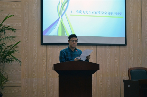 在揭晓获奖名单之前,广告学专业负责人徐卫华老师代表评委团对奖学金评审过程进行了简短的说明。为让不同年级的同学站在同一起跑线,奖学金评审仅限于2014年度获得的奖项和已结题的项目。