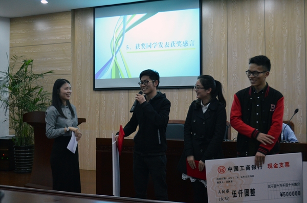 最后,好望角公司季晓飞总经理宣布了获奖名单,共有6名同学获得了5000元奖金,他们分别是李益碧、李雅婷、汪新东、赵莎莎、顾晨娴、陈强。拿着大张的支票,获奖者们都难以掩饰喜悦和感激之情,对广告学专业的老师、同学,对樱花小说