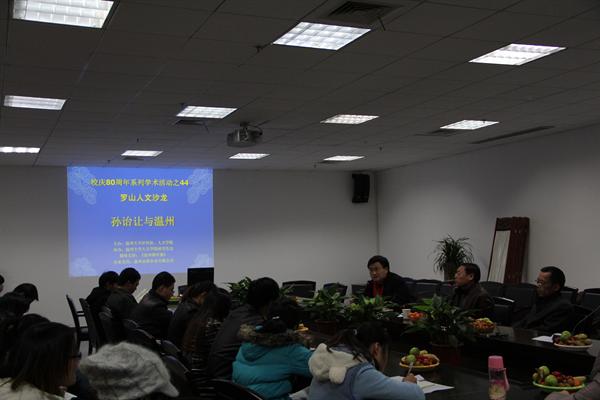 副院长孙良好教授、“孙诒让”研究所所长王兴文教授和尤育号教授担任本次活动的主讲嘉宾,由学术部部长郭垚同学担任主持人。中国史、古代文学和语言文字学专业的学生以及其他文学爱好者积极融入了此次活动。首先,主持人致辞揭开了活动的序幕;接着,孙良好老师、王兴文老师、尤育号老师从情感、学术等不同角度讲述了“孙诒让”与“温州”的密切关系;然后,学生代表做了准备充分的主题发言,并且师生之间进行了积极的互动交流;最后,主持人总结致谢,孙良好老师预告了下次沙龙的主题以及初步的安排。