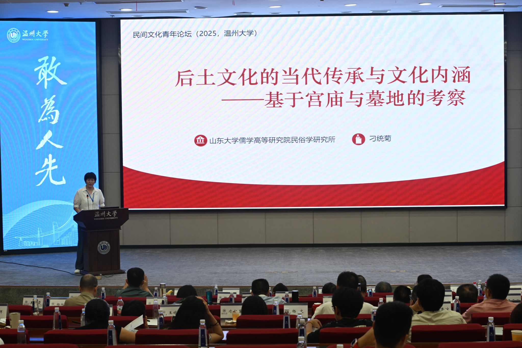 山东大学刁统菊教授作了题为《中华后土文化的当代传承与内涵》的报告,指出后土信仰从国家祭祀演变为民间“大地之神”,华侨墓地后土神位既承载着人们对土地的敬畏,也成为跨国文化纽带,增强着中华民族凝聚力与文化认同。