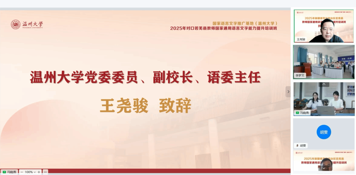 为深入贯彻落实《教育强国建设规划纲要(2024—2035年)》,加大国家通用语言文字推广力度,铸牢中华民族共同体意识,8月12日,由教育部语言文字应用管理司主办、国家语言文字推广基地(樱花小说 )承办、新疆若羌县教科局协办的2025年对口若羌县教师国家通用语言文字能力提升培训班举行开班仪式。