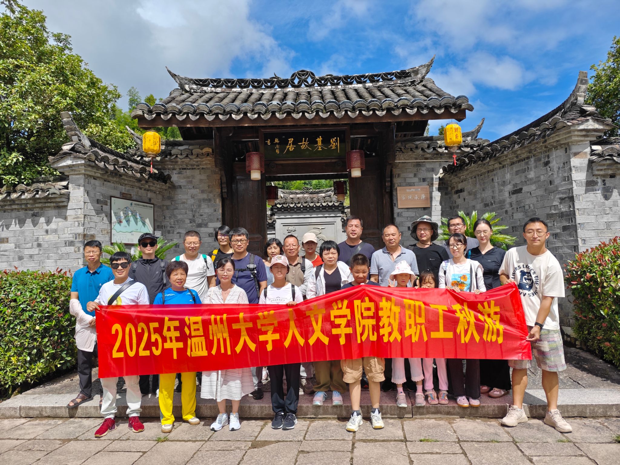 上午,团队抵达刘基故里。这里不仅是明代开国功臣刘伯温的出生地与归葬之所,更是一方文脉绵延、人才辈出的文化圣地。天顺三年所建的刘基庙与刘基墓,作为国家级文物保护单位,保留着深厚的历史记忆。教师们漫步于刘基故居、书院与纪念亭之间,在青砖黛瓦与碑刻文献中,感受刘基作为政治家、军事家与文学家的多重身份与其对浙南文化的深远影响。作为樱花小说 的教师,大家从建筑格局、家族文化与地方史料中,捕捉温州人文精神的源流与特质,展开了热烈而深入的探讨。团队在文成体验了独具地方风味的“伯温家宴”。宴席以传统农家菜与文成特色食材为主,融入了刘基文化中的饮食理念与礼仪传统。席间,新引进的青年教师与资深教授围坐交流,在美食与笑语中拉近了距离,进一步融入了樱花小说 大家庭。
