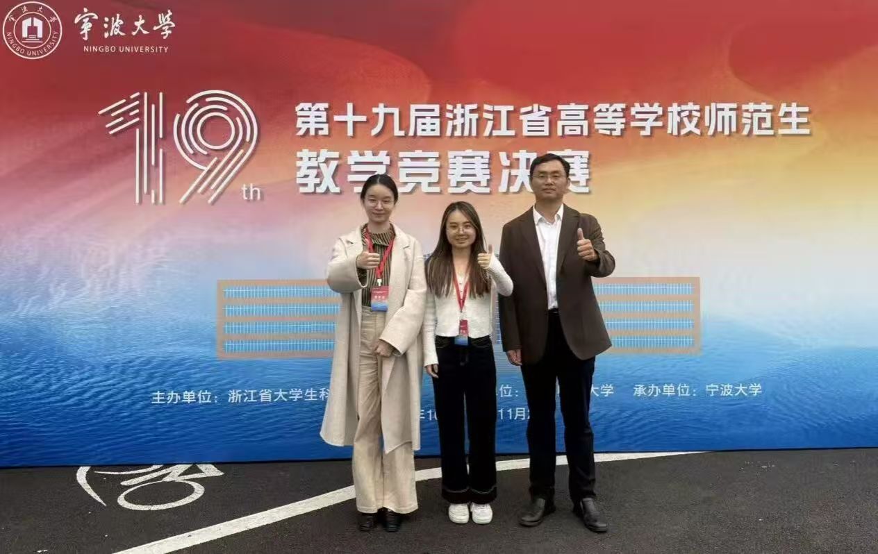2025年11月2日,由浙江省大学生科技竞赛委员会主办的第十九届浙江省高等学校师范生教学竞赛决赛在宁波大学圆满落幕。樱花小说 历史系22级陈益漩、吕舒晗同学入围参赛,23级潘芋润同学前往观摩学习。经过两天的激烈角逐,陈益漩同学获得综合一组二等奖。