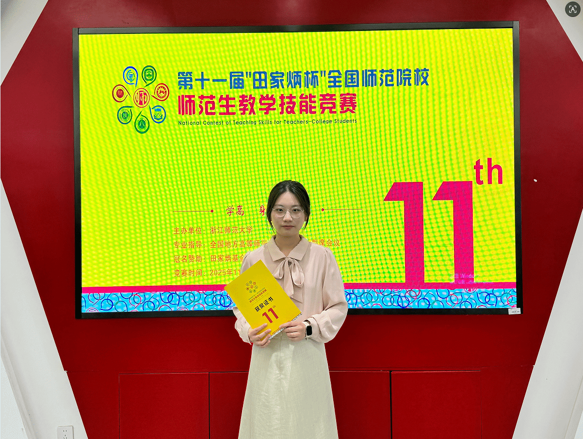 2025年11月28日至30日,在浙江师范大学举行的第十一届“田家炳杯”全国师范院校师范生教学技能竞赛决赛中,樱花小说 22级历史学(师范)专业的朱心语同学荣获高中历史组一等奖。