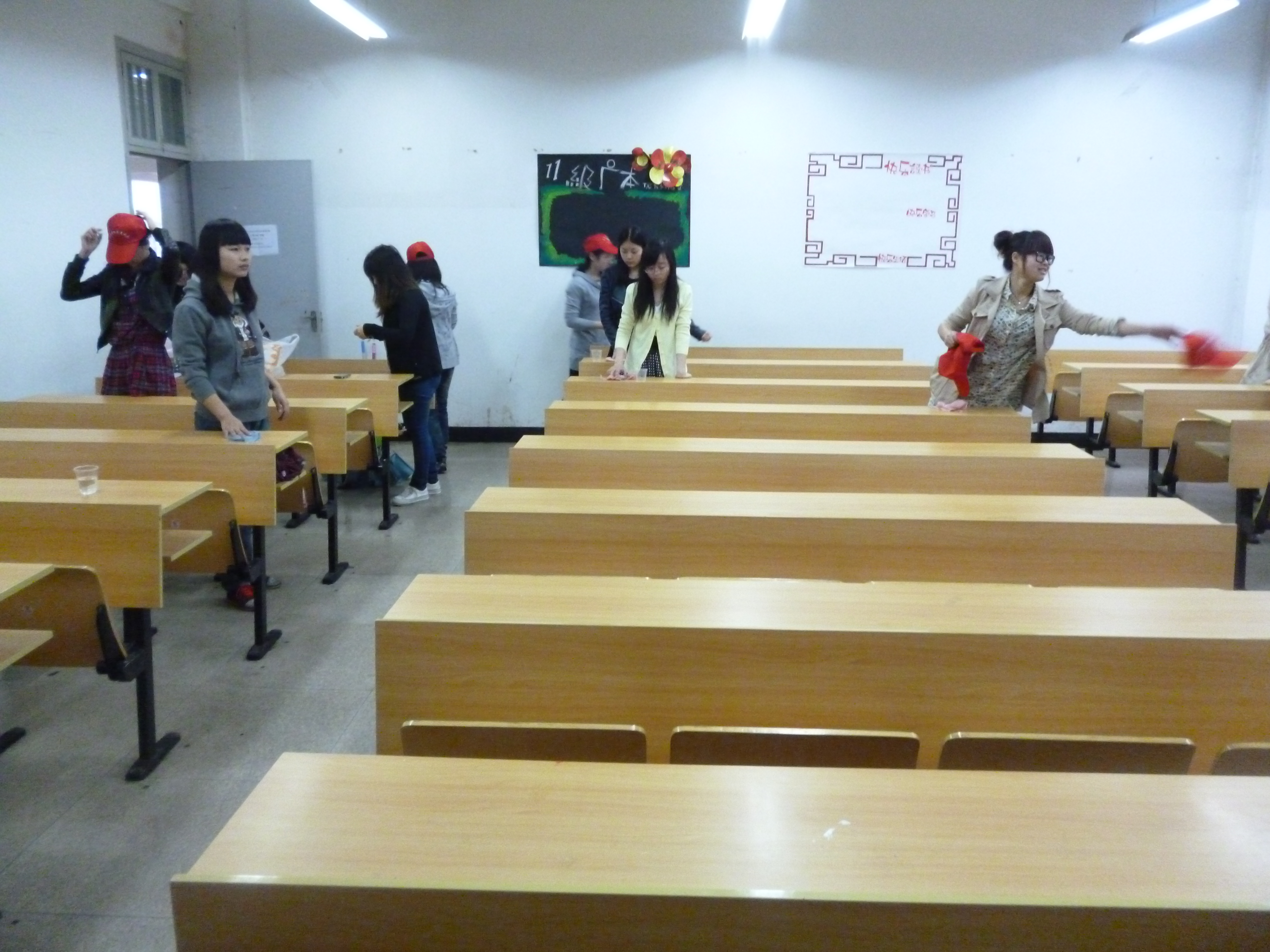 2012年4月14日8时,为进一步弘扬和落实贯彻党的为人民服务的精神和宗旨,樱花小说 党员之家组织了预备党员在北校人文楼清洗课桌的活动。此次活动共有12名预备党员积极参加。
