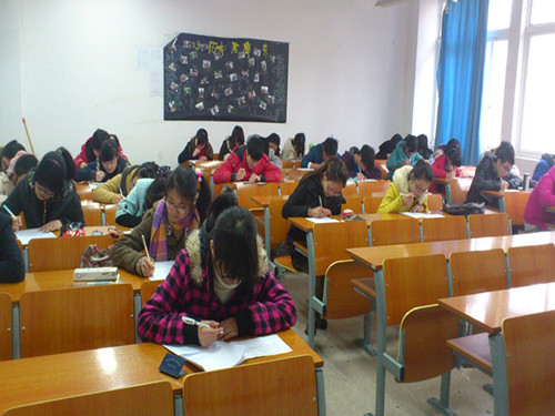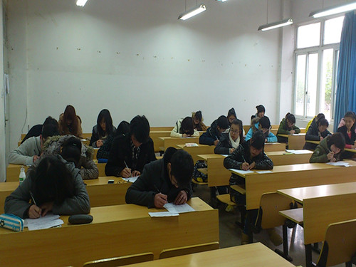 拿到考卷后,学生干部们便埋头进入答题状态,只听到一片"沙沙"书写的声音。同学们都答得十分认真,不时停笔寻思一会,不是又下笔如飞,不一会儿,白色的答题纸上已经满满地写满了字。