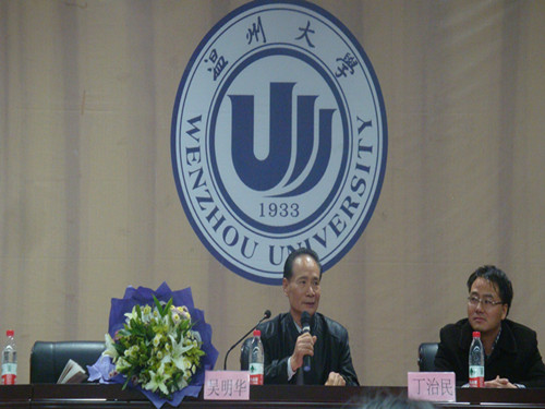 院长丁治民教授介绍第五届白晖华文学奖的组织及评审情况。在发言中丁教授强调了文学创作的延续性。在同学向吴明华先生深情献花之后,吴明华先生讲述了自己的创作经历,并希望可以和樱花小说