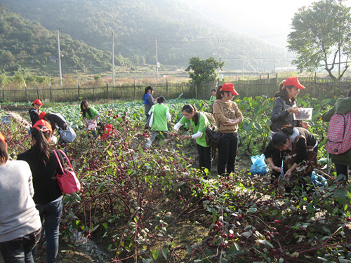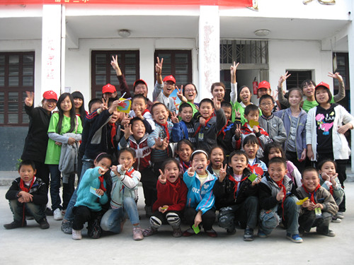 下午一点,便可以见到志愿者们在C区门口集合的身影,他们整装待发,迫不及待地想要见到丽岙小学的小朋友们。大约一个小时的车程以后,志愿者们到达目的地见到了那群活跃的小精灵们。因为到达学校比较早,小朋友们仍在上课,志愿者们便主动提议,想帮学校做些另外的事来奉献自己的力量。巧的是,学校这几天正忙于果蔬采摘,志愿者们纷纷想去实践一下。在学校老师的带领下,志愿者们来到实验基地,帮助学校采摘一种名叫"红桃K"的果实与大芋头,既减轻了学校相关人员的工作负担,对于志愿者们来说,又获得了一种乐趣,一种新的体验。最后,志愿者们分成三队,每队约12人,来到四、五年级的三个班中分别开展有关感恩节、消防日、记者日的主题班会。上课过程中,小朋友们的纯真、热情以及"小老师们"的努力、亲和、热情使整个课堂气氛十分和谐,所有人都洋溢着幸福的笑容。活动一直持续到下午五点,当志愿者们不得不踏上回学校的路时,都依依不舍地与可爱的小朋友们挥手告别。也许活动对于志愿者们来说并不算很长,而产生于活动之中的情感却是无比的真实和感人,这份感动也往往只能在亲身体验之后才会真正懂得。暮秋的傍晚显得有些萧瑟,而志愿者们的心里却是暖洋洋的。再见,再见,丽岙三小。