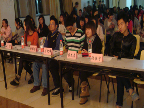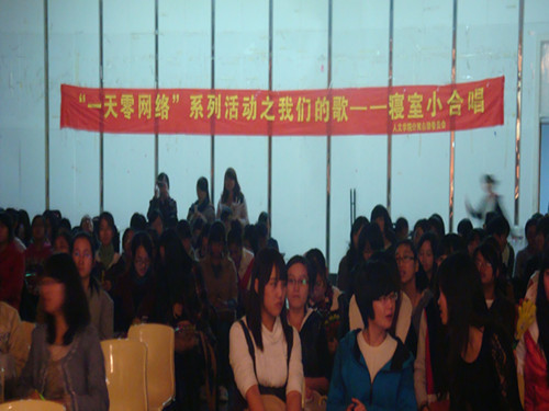 一天零网络系列活动之"我们的歌--寝室小合唱"决赛在大学生活动中心多功能厅拉开了序幕。来自音乐学院的评委王倩和樱花小说