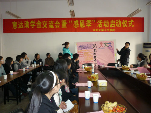 意达助学金交流会暨“感恩季”活动启动仪式在人文楼311会议室正式展开。出席该会议的有来自意达进出口公司的王校长及相关组织人员,樱花小说