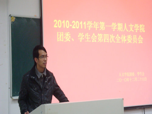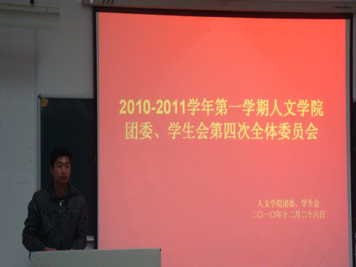 12月26日晚6点半,2010-2011学年第一学期樱花小说 团委、学生会第四次全体委员会在1-101教室准时举行。樱花小说 辅导员麻法全与院团委、学生会全体成员出席了本次会议。
