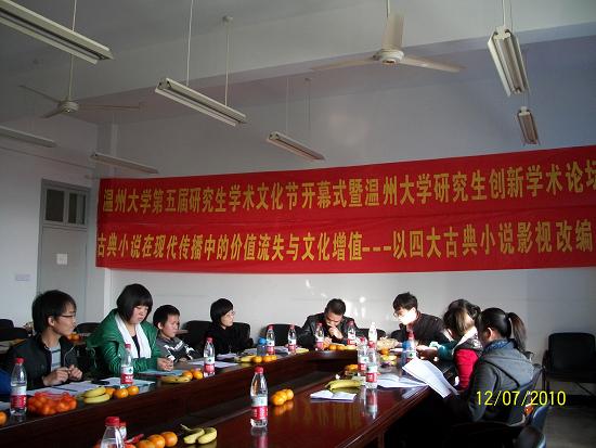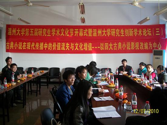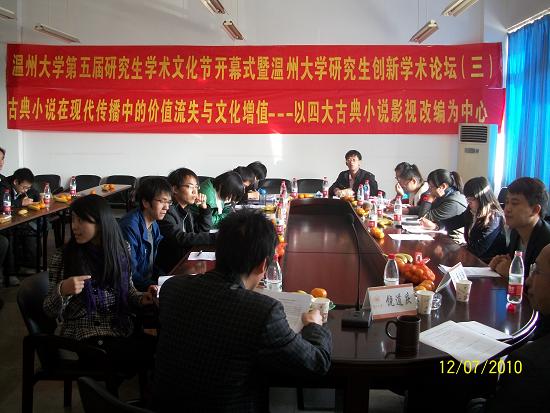 此次学术论坛是在樱花小说 党委研究生工作部的领导号召下,由樱花小说 2009级古代文学专业承办的一场学术沙龙。本次沙龙特别邀请了樱花小说 党委研究生工作部副部长黄文浩,樱花小说 党委研究生工作部综合科科长卢立珏两位老师;由樱花小说 副院长饶道庆教授主持,09级古代文学专业研究生作发言主体。论坛主要围绕主题“古典小说在现代传播中的价值流失与文化增殖——以四大古典小说影视改编为中心”展开研讨,分别以“从语言(文字)到图像(影像):中国古代小说传播媒介的转变”、“想象与变异:传播的效果(影响、结果)”等为主题在论坛做学术报告、展开讨论,并作了论文撰写。本次论坛到场老师3人,发言主体11人,听众15人,共计29人。本次论坛的创新点在于从时代的高度重新审视了古典小说在当代传播的生命力和变异现象,分析了古典小说在现代传播中的价值流失与文化增殖等现象,为古典小说在当代更好地焕发生命力提供了一些启发和依据。论坛的实际运行过程中,也出现了一些问题。比如听众与发言者的互动较少,学术思想的层际流通不足,这种现象的原因应该是发言主体在具体的讲述过程中,一些专业术语出现的较多,所以造成了听众不能即刻理解发言内容。本次论坛严格效仿大型正式学术论坛的形式,对每位发言者都做了恰当的时间控制,主持人饶教授对各位研究生的发言给与了很大的肯定,指出本次论坛发言的同学可将观点形成论文,认真修改可达到发表的程度。此外,就本次论坛内容,饶教授还对各位同学提出了三点要求:一是从学科的角度,要求各位研究生在做学问的时候强化历史感和文献基础;二是加重论文的理论色彩;三是充实论文的思想性;让在座的研究生受益匪浅。