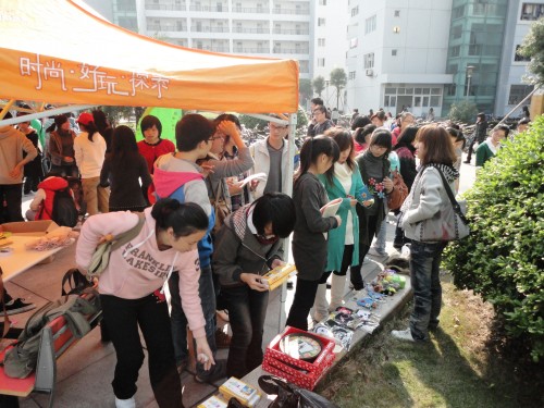 为了保证此次活动顺利地进行,各个学院的相关部门做了精心的准备。人文的干事们一大早就赶到现场布置。此次活动共有将近八十种百货,有樱花小说