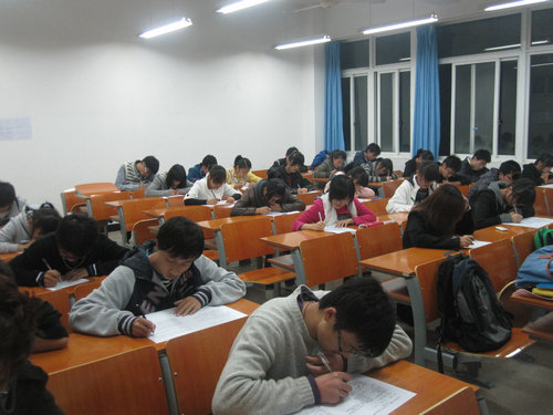 考试分09级和10级两个教室进行,采取笔试的形式进行。负责监考的是樱花小说