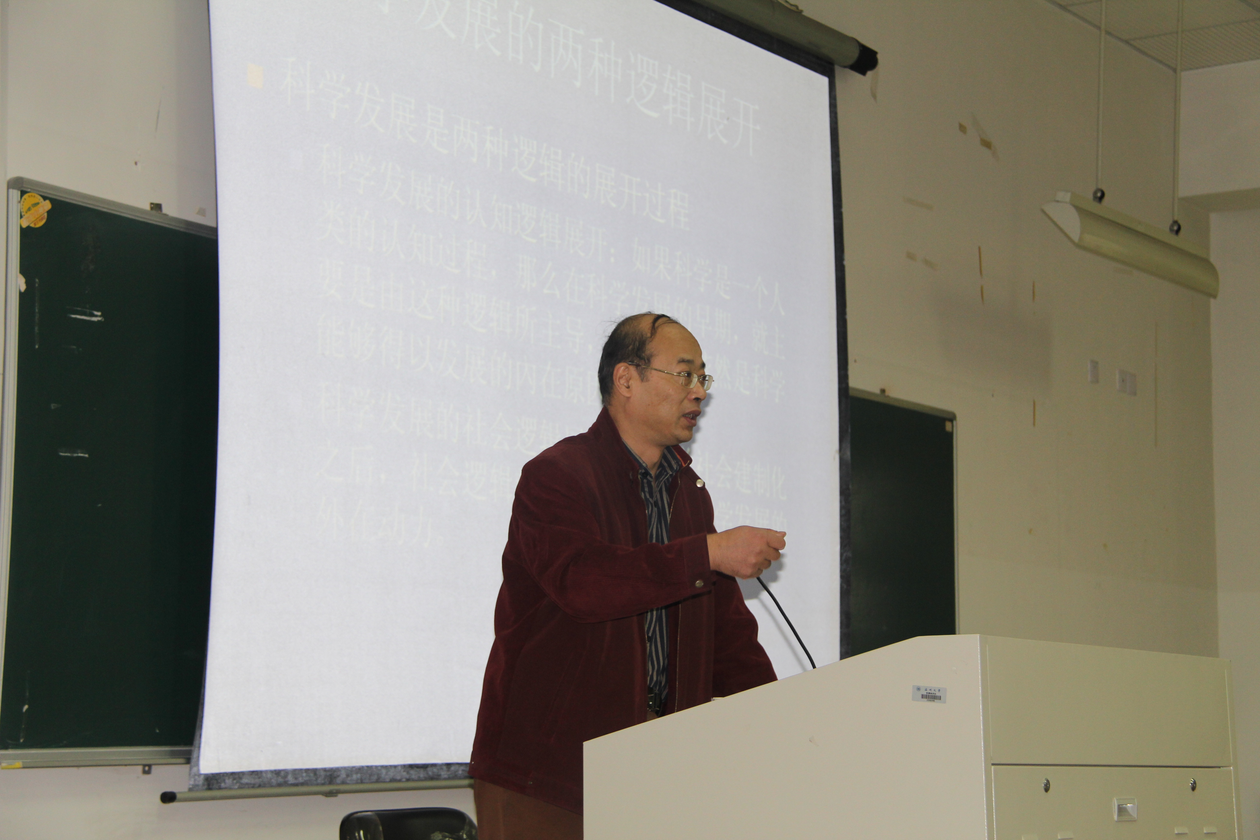 11月15日下午,中国科学院研究生院社会科学系教授、博士生导师、《自然辩证法通讯》杂志编辑部主任,王大明教授应邀做客我校樱花小说 ,为樱花小说 专门史专业硕士生和历史学专业本科生作了题为《世界科学中心的转移与美国科技的崛起》的精彩讲座。本次讲座由樱花小说 副院长刘建国副教授主持,参加这次活动的还有王兴文教授、郑春生教授等教师。报告会上聘请王大明教授为樱花小说 客座教授。