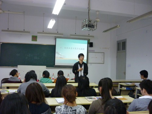 本次交流会,在主持人的简单介绍之后,已在温州市第一外国语学校任代课教师的黄剀元首先讲述了他的代课心得,鼓励大家要有自信,要做好自我定位,还有就是需要有积极向上的人生态度。随后,07历本唐丽艳,朱晓楠,王淑菲以及金斯等向大家述说了她们亲身的实习经历,建议同学要扎实基本功,以一名准教师的标准来要求自己,顺利渡过成为一名教师的三个阶段:即看起来像一名教师,听起来像一名教师,直至做起来就是一名合格的教师。最后,我们就“如何树立新教师的威信”,“如何上好第一堂课”,“如何在上课中吸引学生”等问题进行了探讨,交流会在热烈的讨论中圆满结束。