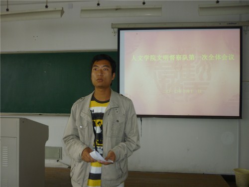 首先,陈辉学长向新成员介绍了文明督察队的性质、宗旨以及相关奖励措施,使文督新成员对这个组织有了初步了解和认识。接着樱花小说