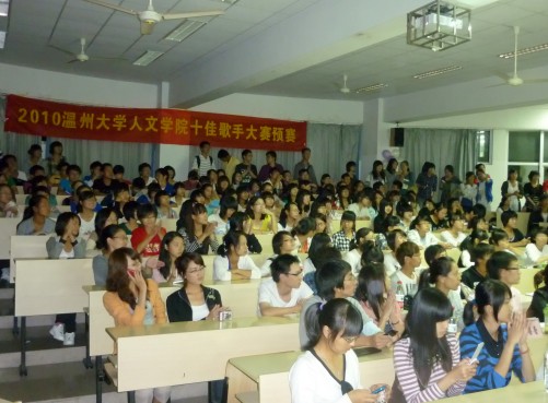 十佳歌手大赛预赛在人文楼203教室拉开帷幕。学生科副科长曾蓓蕾老师、辅导员麻法全老师,音乐学院的两位研究生,学生会成员等出席该赛。樱花小说