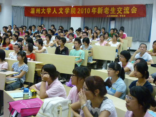 首先,主持人以一段视频揭开了交流会的序幕,向同学们展示了人文团学所开展的丰富多彩的活动。接下来,麻老师在讲话中对新生们提出了几点颇有教益的建议。而后,有趣的小游戏迅速调动起了现场的气氛。之后,几十张珍贵的照片以学习、工作、创业三个主题勾起了新生们对大学生活的无限憧憬。最后,进入"有问必答"环节。七位大三大四的学长学姐坐到台前,为新同学们一一解答对于大学生活的疑问。