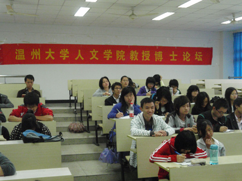 苏勇强副教授与学生们相聚在1-201教室,共同探讨学习《论语》,遨游于道德的天地。