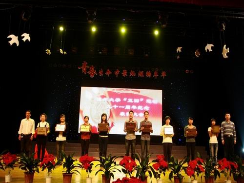 “五•四”运动九十一周年纪念表彰大会在大学生活动中心演艺厅隆重举行。校党委副书记牟德刚、校团委及各学院负责人、团委书记和来自各学院1200多名团员青年代表参加了这次纪念表彰大会。樱花小说