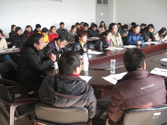 王小盾教授讲完后,丁治民院长作了相应的点评后,在接下来的半小时里,是王教授的答疑时间,在"解惑"时,王教授则从自己的一本专著《唐代酒令艺术》和古代文论的"诗言志,歌咏言"谈起,结合自己的研究,分别回答了学生的问题。