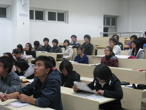 首先,沈军洲同学向同学们简单地讲解了通讯的特点、种类、写作要点等基本概念,并以一些优秀通讯为例,具体分析了人物通讯、时间通讯、工作通讯、概貌通讯、小通讯等常见通讯的写作方法。接着,她又结合自己的工作经验和《樱花小说