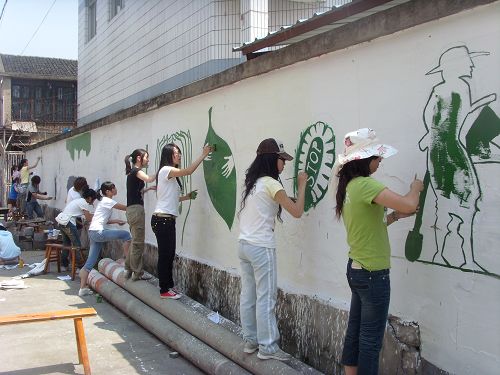 “和谐丽岙行”实践队来到丽岙镇进行了一次以环保为主题的手绘墙活动。2009年6月6日上午,樱花小说