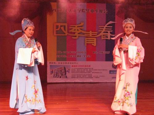 毕业生晚会在北校音乐厅华丽开幕。这场名为“四季青春”的晚会由白金汉英语培训中心提供赞助,由樱花小说