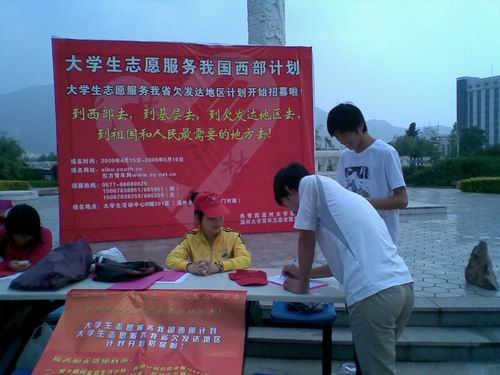 活动中,志愿者们积极地向同学们进行宣传,热情地介绍了“两项计划”的有关内容,并鼓励同学们踊跃参与。宣传过程中许多同学表现出了浓厚的兴趣,纷纷向志愿者们咨询报名的相关情况,还有的同学表示自己已经报了名。