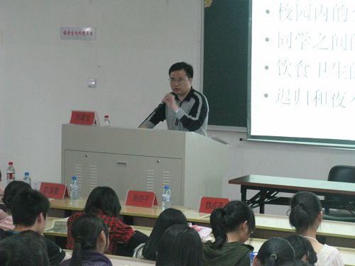 学生会纪检部施晶晶同学对本次公寓文化节的活动内容作了具体的介绍,使与会的全体同学和老师对本届公寓文化节有了一定的了解。接着,周剑平书记和魏成春副书记为上学期荣获文明寝室的寝室长和优秀寝室长颁发了荣誉证书,同学们也纷纷为他们鼓掌以表祝贺。然后,倪建发老师从各级领导对稳定安全教育工作的高度重视讲起,说明学校对学生安全问题的重视,并突出了安全教育的重要性。倪老师又从我校潜在的安全隐患入手,对存在在同学们身边的安全隐患,如财产安全、交通安全、饮食安全等进行了深入剖析,并提出了具体的防范措施。