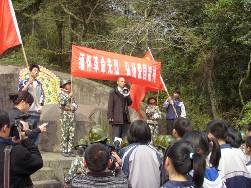 2009年4月2日下午,在丽岙镇团委的带领下,丽岙三小学生武装连、华侨中学、任岩松中学的学生们和樱花小说 青年志愿者协会的志愿者们一起参与了革命烈士的扫墓活动。