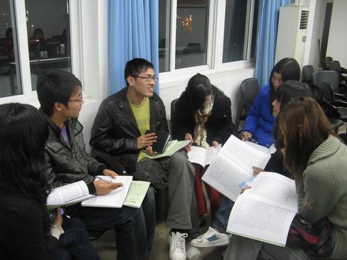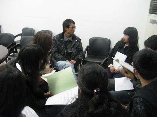 接着,各参会者就学生干部如何落实科学发展观这一问题进行了分组讨论并发言。08中本一班的班长冯静安同学讲到,要重视"发展",并要善于发现问题,解决问题,打造一个服务型、创新型学生会。并强调学生会成员在工作中应注重"以人为本"。范辛祥同学则侧重地谈了"和谐",他提出了创建"和谐人文"的观点。各小组积极发言,现场气氛相当热烈。最后麻法全老师总结同学们的发言,并提出了"注重自身的兼收并蓄"的观点,强调了学生工作的制度化与资源整合,真正做到落实科学发展观,带动整个学院全面、可持续发展。
