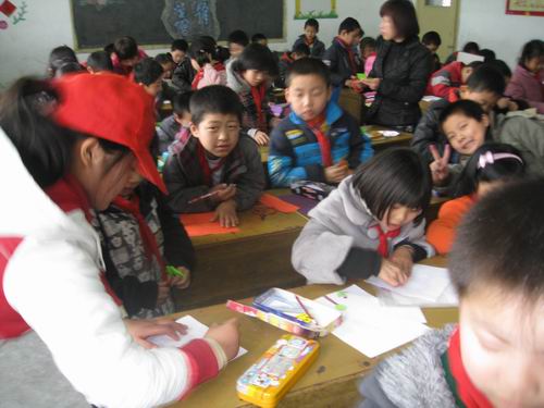 中午12时30分樱花小说 的志愿者们在C区门口集合,步行到公交总站和瓯江学院的志愿者会合后,一起出发来到了益民小学。在课间活动还没开始的时候志愿者已经和孩子们打成了一片。上课铃响后,志愿者们按照分配进入了班级,在老师的协助下组织孩子们进行书签制作比赛。活动开始后孩子们迫不及待地拿出了早已准备好的纸和彩笔,积极地参与到活动中,制作了许多精美的书签。制作书签的活动结束后,志愿者将孩子们的作品收齐,在课间进行了评比。许多孩子因为书签制作精美而获得了奖品。整个下午孩子们和志愿者都过得很开心。