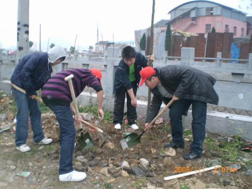 2008年3月11日,樱花小说 思源青年志愿者来到丽岙镇,与当地的机关政府领导、企业员工和学生代表一起参与了植树活动。