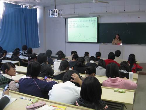 本次讲座的主讲人是获得复旦大学博士学位的罗筱玉老师,罗老师潜心研究古代文学,在这方面颇有造诣。罗老师先向同学们展示了两幅地图,通过分析宋、辽、西夏的形式引入宋代,然后从同学们深感兴趣的文体娱乐活动展开,介绍了宋代流行的艺术、体育、游艺三类活动,通过互动将相扑、踢毽子、斗禽虫等多种多样的活动呈现到在座的同学面前,让大家看到了一个生动多彩的宋朝。在轻松愉快的气氛中罗老师将话题带入了引人注目的两大文化现象:艺人社团的出现及娱乐中心的形成。随着讲座的深入,同学们跟随罗老师的提问思考,感受着宋代文化的恢宏。