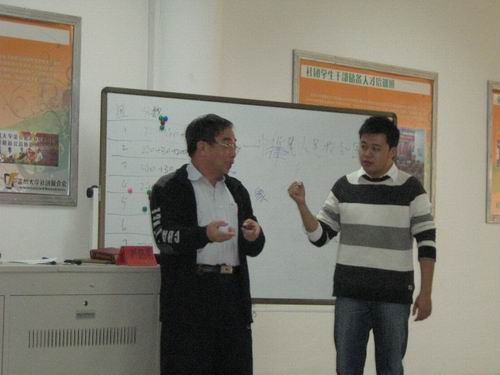 下午2:00整,参加这次活动的所有成员准时到场认真听取了严路明老师的指导讲座。首先严老师介绍了中国话剧事业的发展史以及温州话剧事业的所经历程,并着重赞扬了自2002年举办至今的大学生话剧节。接着,严老师也针对现在大学生在编、导、演话剧中所存在的问题进行了一定的批评,同时进行了细致的指导,并针对现场问题提出了他的要求。他强调话剧还是应该回归传统,多参考,多借鉴经典剧目。