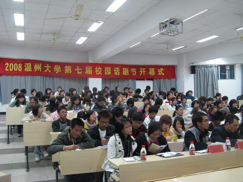 2008年11月20日晚,2008樱花小说 第七届校园话剧节开幕式在人文楼203教室拉开帷幕。 院党总支副书记魏成春、农历剧社指导老师高光明、院教学科科长杨秀华、学生科科长李浦豪以及辅导员麻法全出席了本次开幕式。