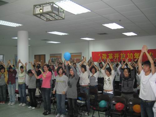 10月28日下午,一场别开生面的团日活动在樱花小说 大学生活动中心素拓室举行。此次活动由07中本二班开展,以“改革开放三十周年”为主题。这场团日活动也是樱花小说 第六期团学干部培训的第二课。