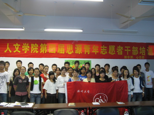 2008年10月15日下午2点,樱花小说 第四届青年志愿者干部培训在人文楼311教室举行。出席本次活动的有樱花小说 辅导员老师麻法全老师,绿色论坛代表渠鑫、刘冰洁,数学学院代表王紫瑶、瓯江学院代表和樱花小说 原青年志愿者协会部长范辛祥以及大一大二的青年志愿者干部。